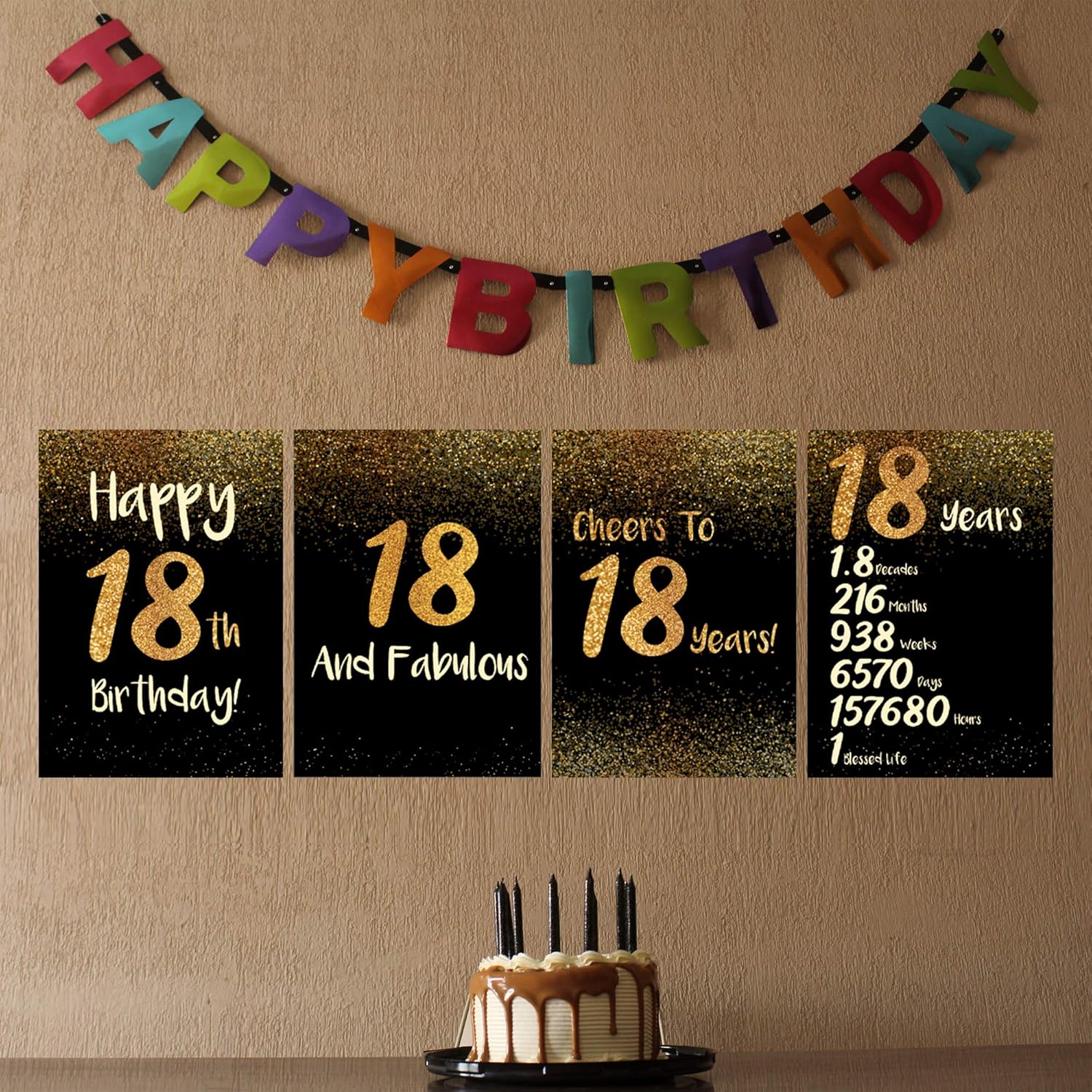 Buy Scene Yourself Happy 18th Birthday Decorations For Boys Girls 18th Birthday Gifts 18th Birthday Party Decor 11 7 X 16 5 Unframed Paper Matte Lamination Set Of 4 Posters Prints Black Gold Online